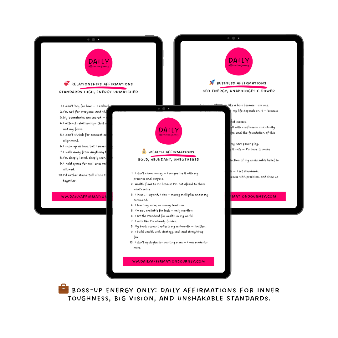 Bold, Boss-up style AFFIRMATIONS for each of the three categories: Wealth, Relationships, and Business — all infused with inner toughness, strut, and unapologetic self-leadership energy.
