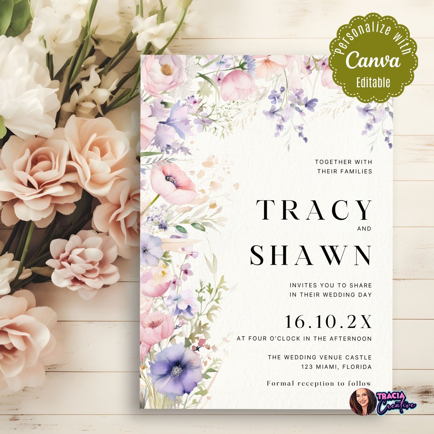 Canva Wildflower Wedding Invitation - Digital Download PDF