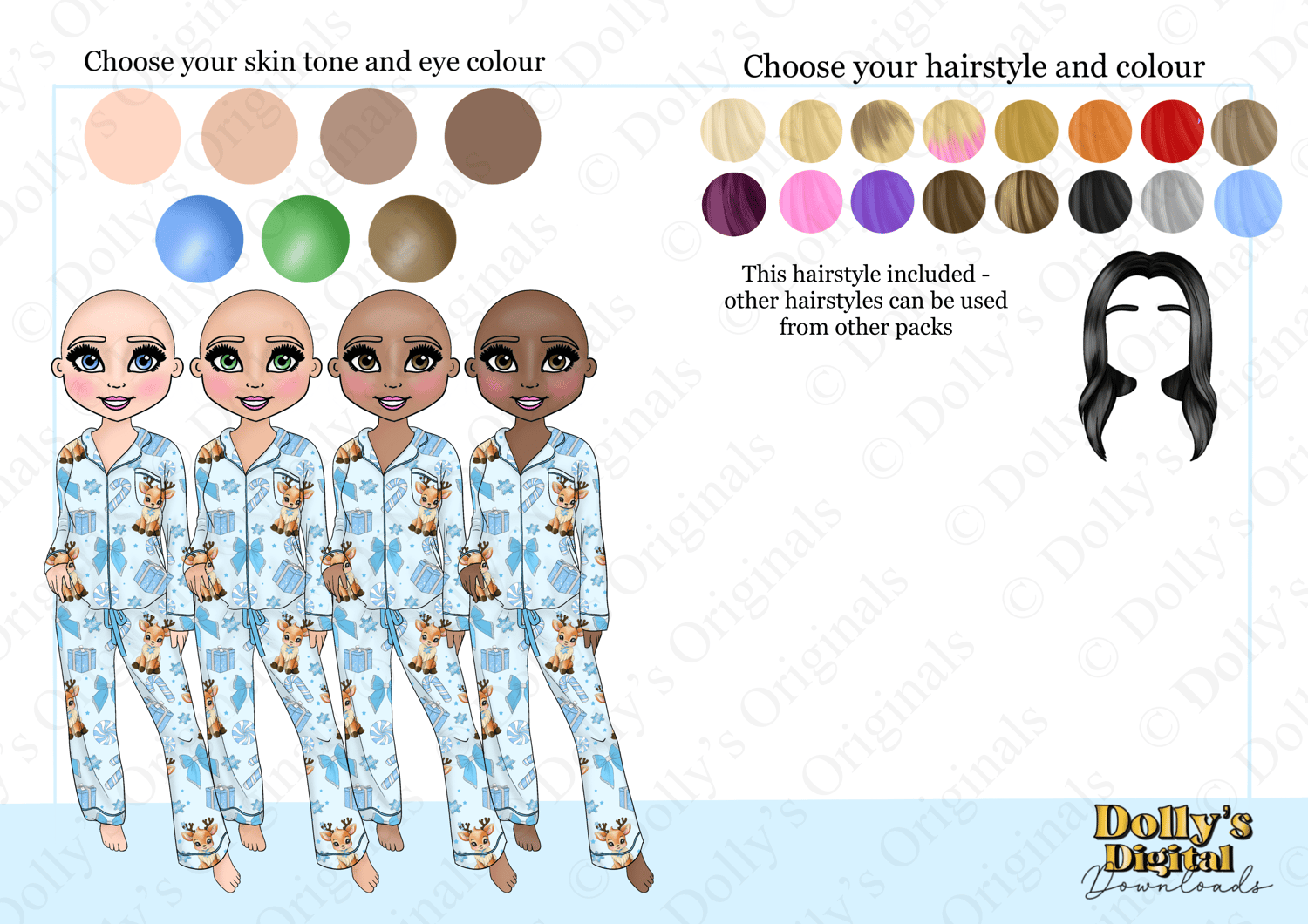 Instant digital download of our Dancer Reindeer Pyjamas Dolly Character Bundle PNG (32 PNG’s)