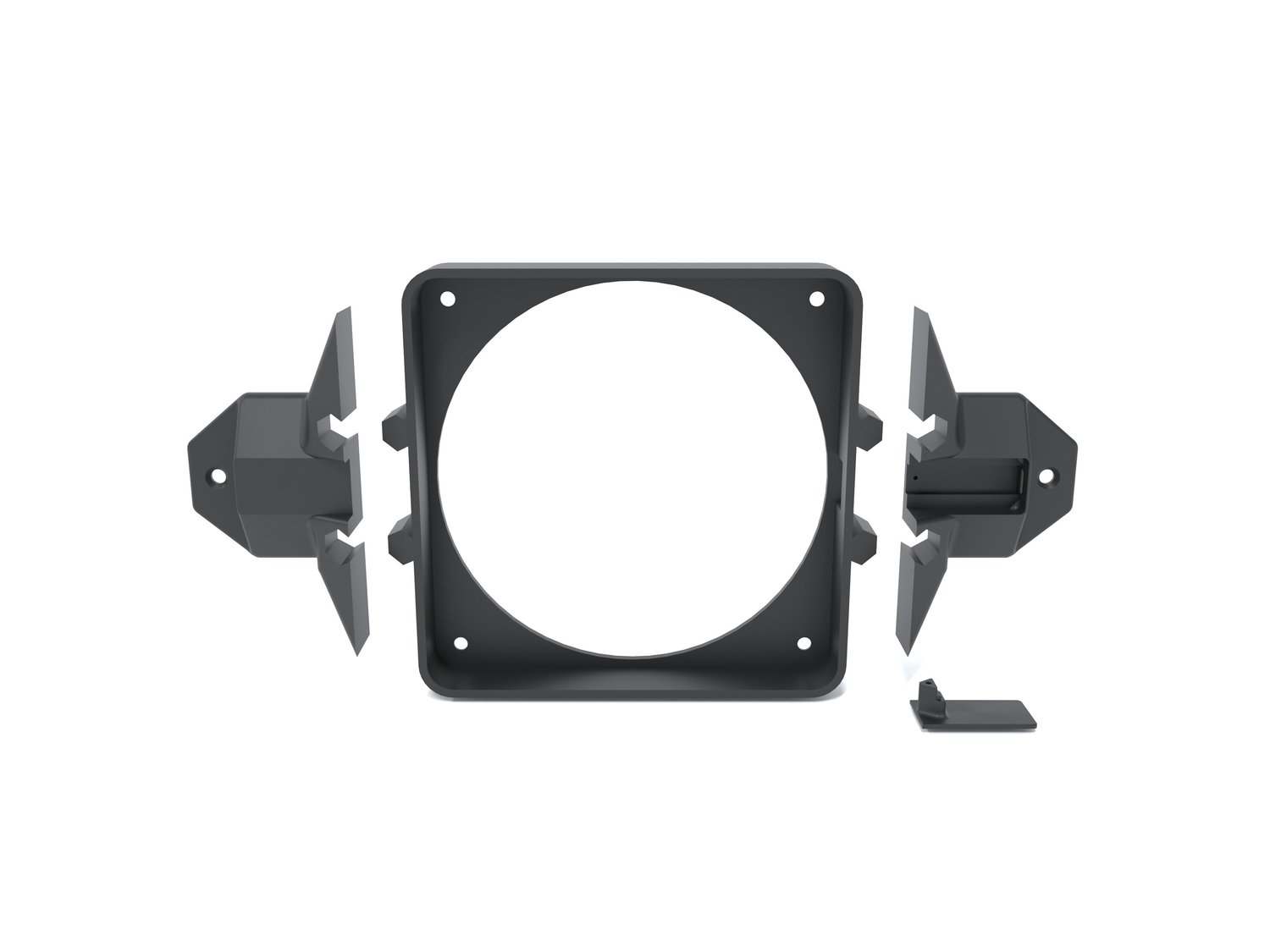 The mount is designed to hold a single 140mm PC fan, which is powered through a micro USB connection utilizing an MT3608 voltage step module. Its three-piece design makes it a breeze to print on almost any size printer, and no supports are required, further simplifying the printing process.