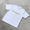 lyrics "I love you" printed on a lightweight 90s style baby tee.