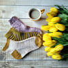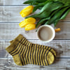 Following your own taste and inspired with the yarn you would like to use choose the version closest to your heart. You can knit these socks in a single color version, in a version with contrasting inserts or version with stripes. You can also create your own unique socks by adding something you like e.g. cables, texture or lace.