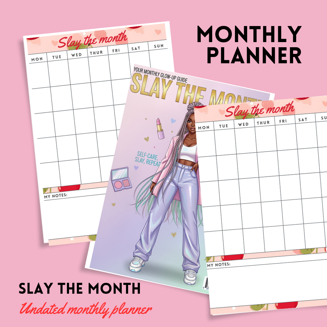 1. Slay the Month Planner (12 pages) – Undated and chic, perfect for tracking goals, to-dos, and affirmations all month long.