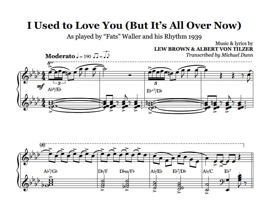 Here's my transcription of Fats' introductory solo to I Used To Love You (But It's All Over Now). A fun, rollicking ride on a great tune.