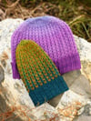 This 28-page ebook includes the patterns for both the Constellate hat and the matching mitts and includes information for both the solid color version and the contrast color version of both patterns. (The patterns are only available together as a set, they are not available individually.)
