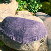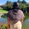 Taghlib is a shoulder hugging, semi-circular shawlette. The name is taken from a tribe that is among the more ancient tribes of the Arabian peninsula, settling in the Nejd (in the central Arabian peninsula). Their resilience and strength are what permitted them to survive as a people, in commerce, and in battle, not to mention in the harsh conditions of the desert area they inhabited. The central cable represents the two horns that are emblematic of this trading tribe.
