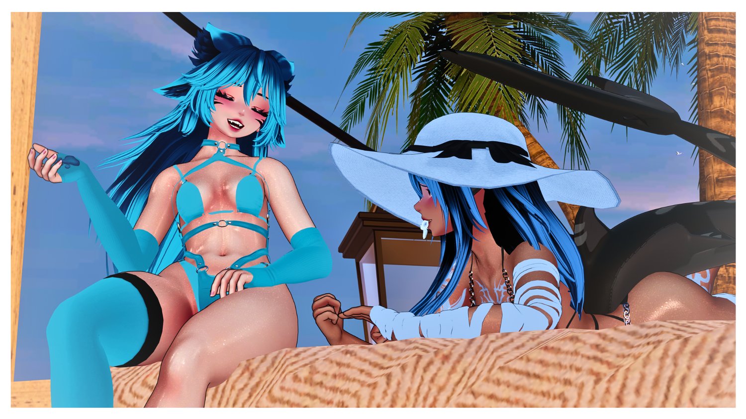 This is MeowMeow, she is a sailor themed cat-girl, she was made with the game FISH! on Vrchat in mind, she is comfy, cozy and ready to sail the seven seas! This avi is in collaboration with Awee, please check out MeowMeow’s counterpart Bitey over on her shop! They have a cute interaction with each other!