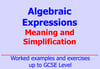 This resource (a pdf on 24 A4 pages) contains 195 questions in nine exercises (with separate answers). Early exercises are suitable for the beginner. Exercise H on the simplification of fractional algebraic expressions and Exercise I on proving identities are suitable for the more able candidates at GCSE.