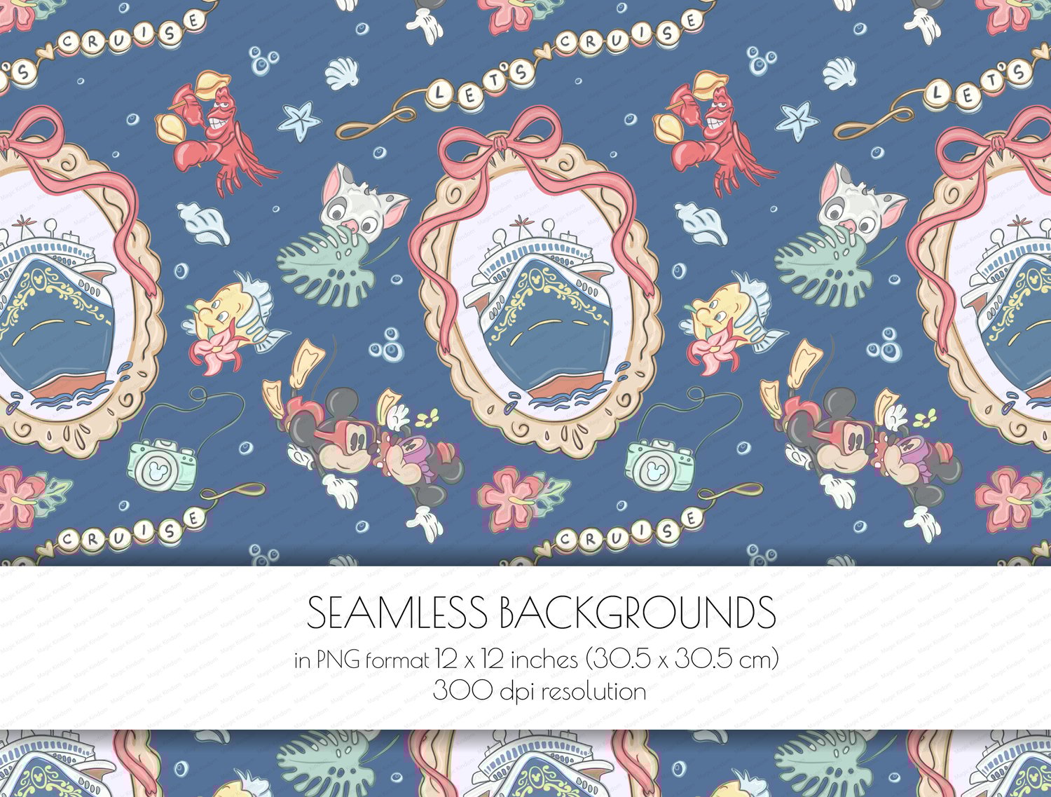 1 Disney Let's Cruise PNG Seamlessbackground in PNG format 12 x 12 inches (30.5 x 30.5 cm) 300 dpi resolution .