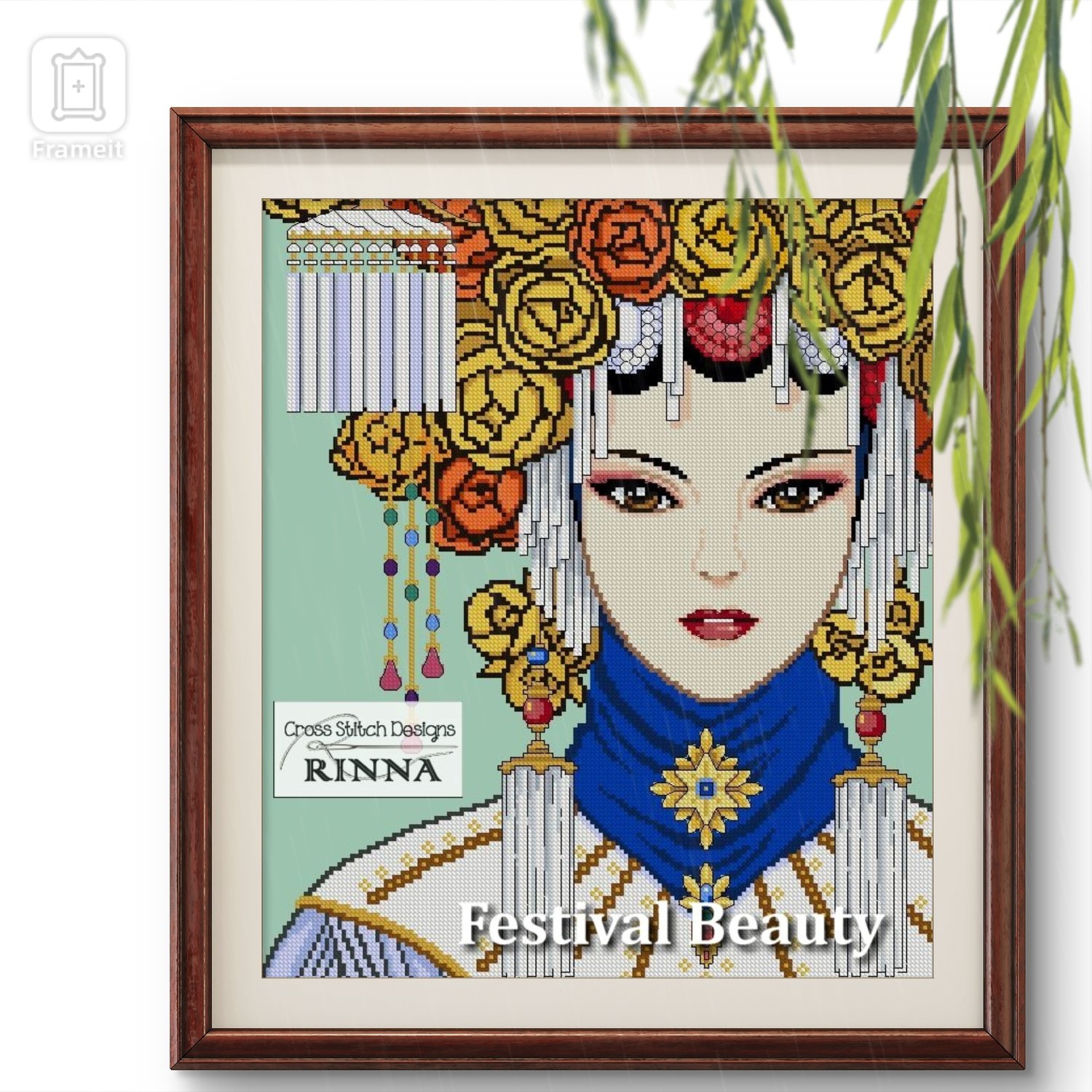 Asian Festival Beauty - Cross Stitch Downloadable PDF Pattern