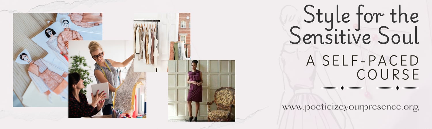Welcome to Style for the Sensitive Soul, a self-paced course for style-conscious people who want their wardrobe to support them, not sabotage them. It's a 7 part course, delivered as 7 video lectures, written content and guided worksheets.