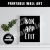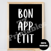 Bon Appetit Print Kitchen Chef Decor Cooking Wall Art French Food Quote Poster Black White Trendy Typography Printable Digital Download JPEG
