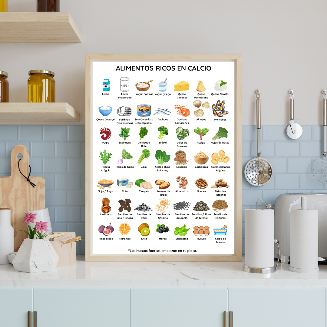 ¿Buscas una lista clara y práctica de alimentos ricos en calcio? ¡Esta guía visual es para ti!