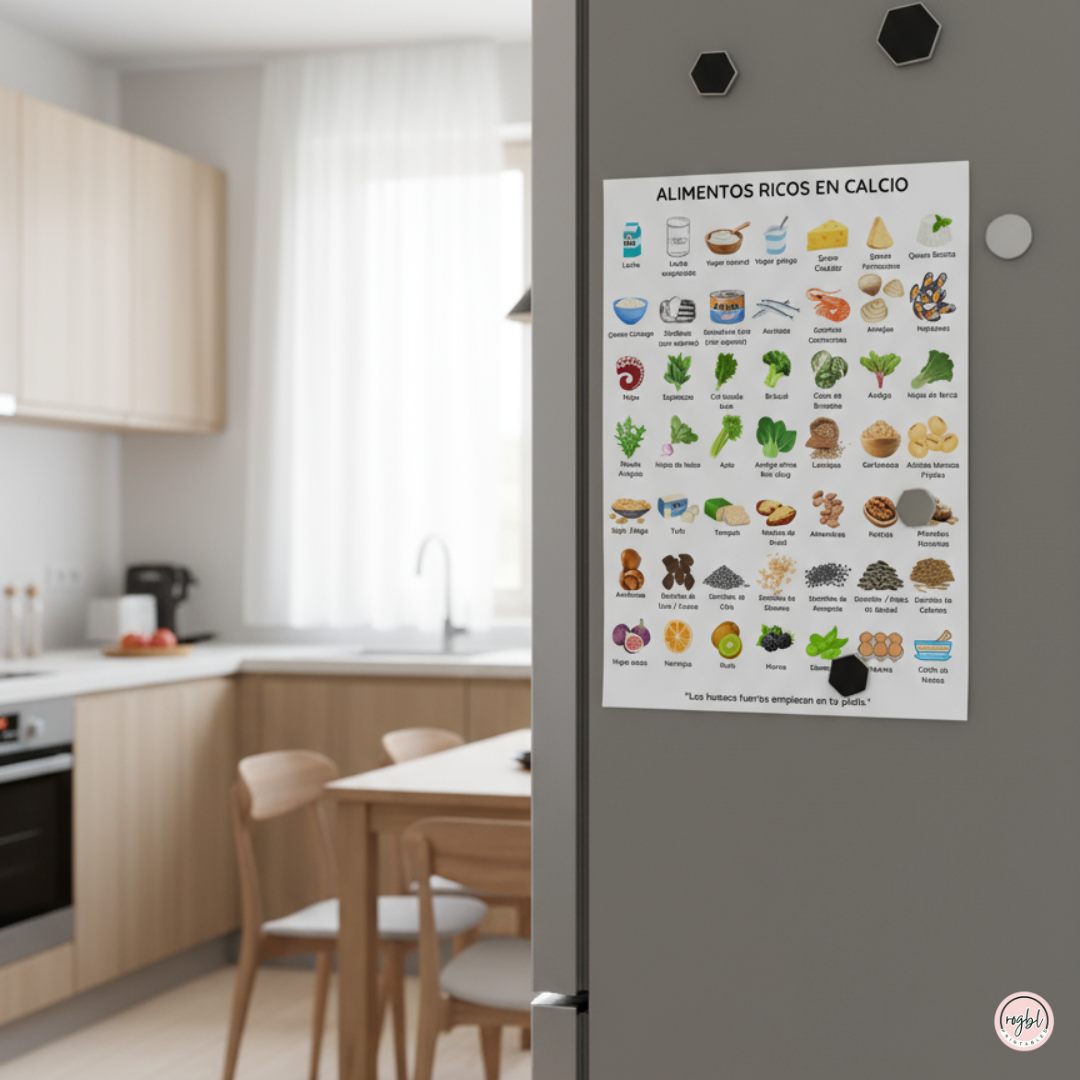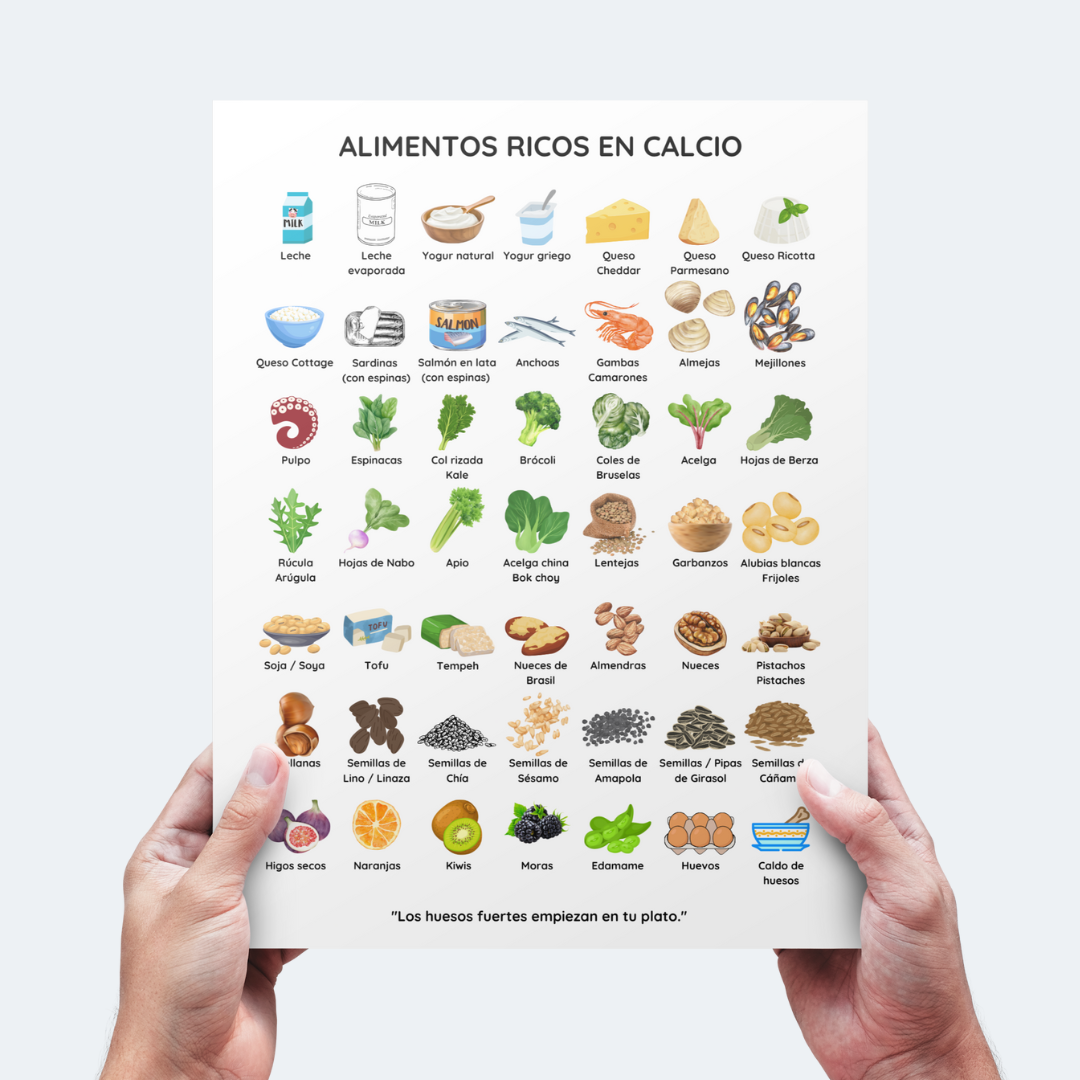 Esta lista te ayudará a tomar mejores decisiones alimenticias día a día. Ideal para dietas sin lácteos, mujeres adultas, personas sin vesícula biliar, personas mayores o con problemas de huesos y dientes.