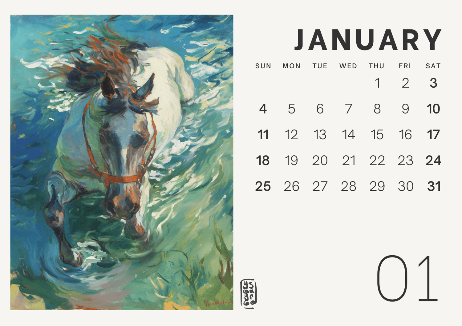 Transform every month of 2026 into a gallery-like experience with this exclusive calendar. Celebrate the spirit of horses while enjoying the calming, atmospheric style of impressionist art.