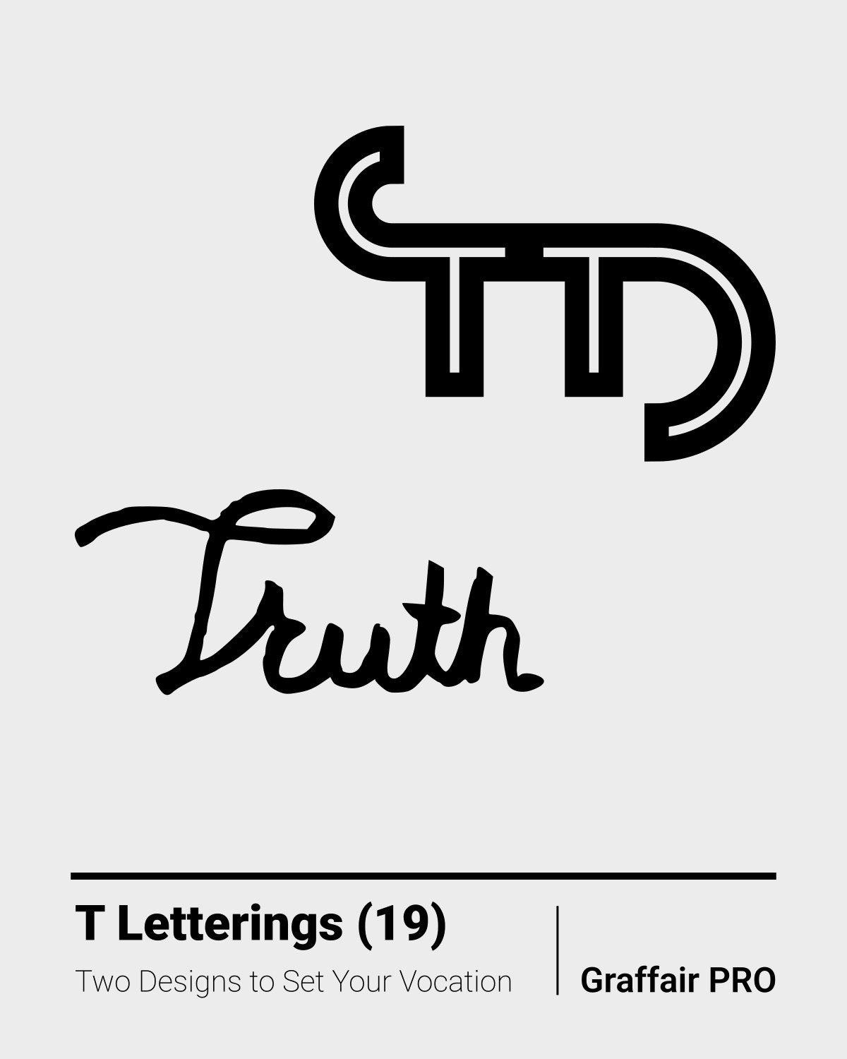 T Letterings (19): The 19th set of two original "T" logo lettering designs to edit and evolve your typography on your visual branding project. These letterings are part of the "800 SVG Letterings" bundle.