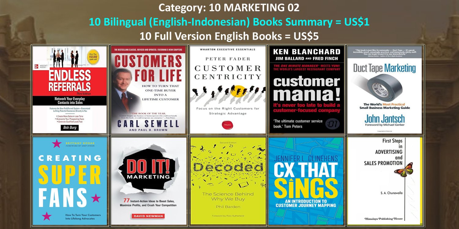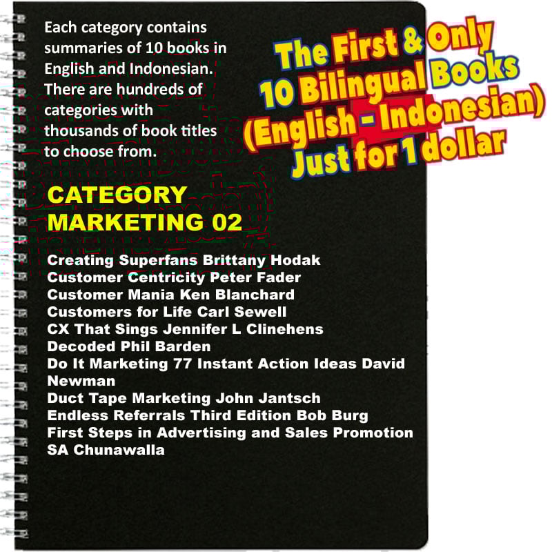 · Untuk 10 buku summary dalam 2 bahasa (English-Indonesian), hanya perlu 1 dollar saja, atau Rp.16.000,-