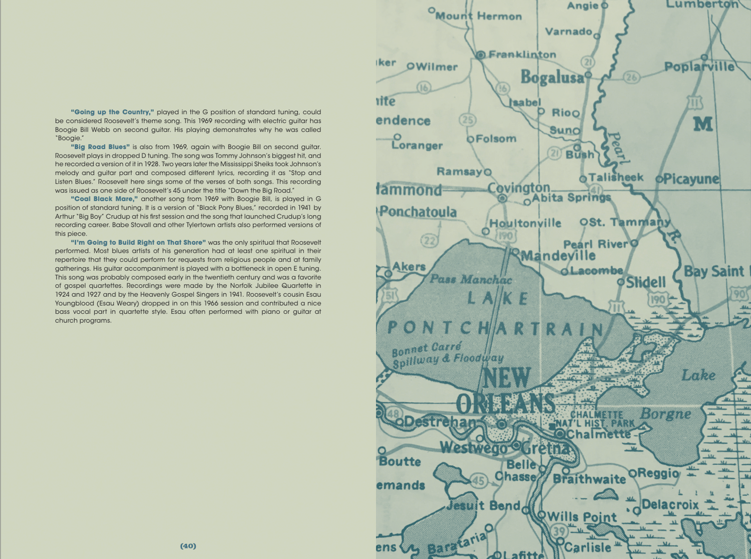 - spanning personal repertoire, community blues, and enduring spirituals.