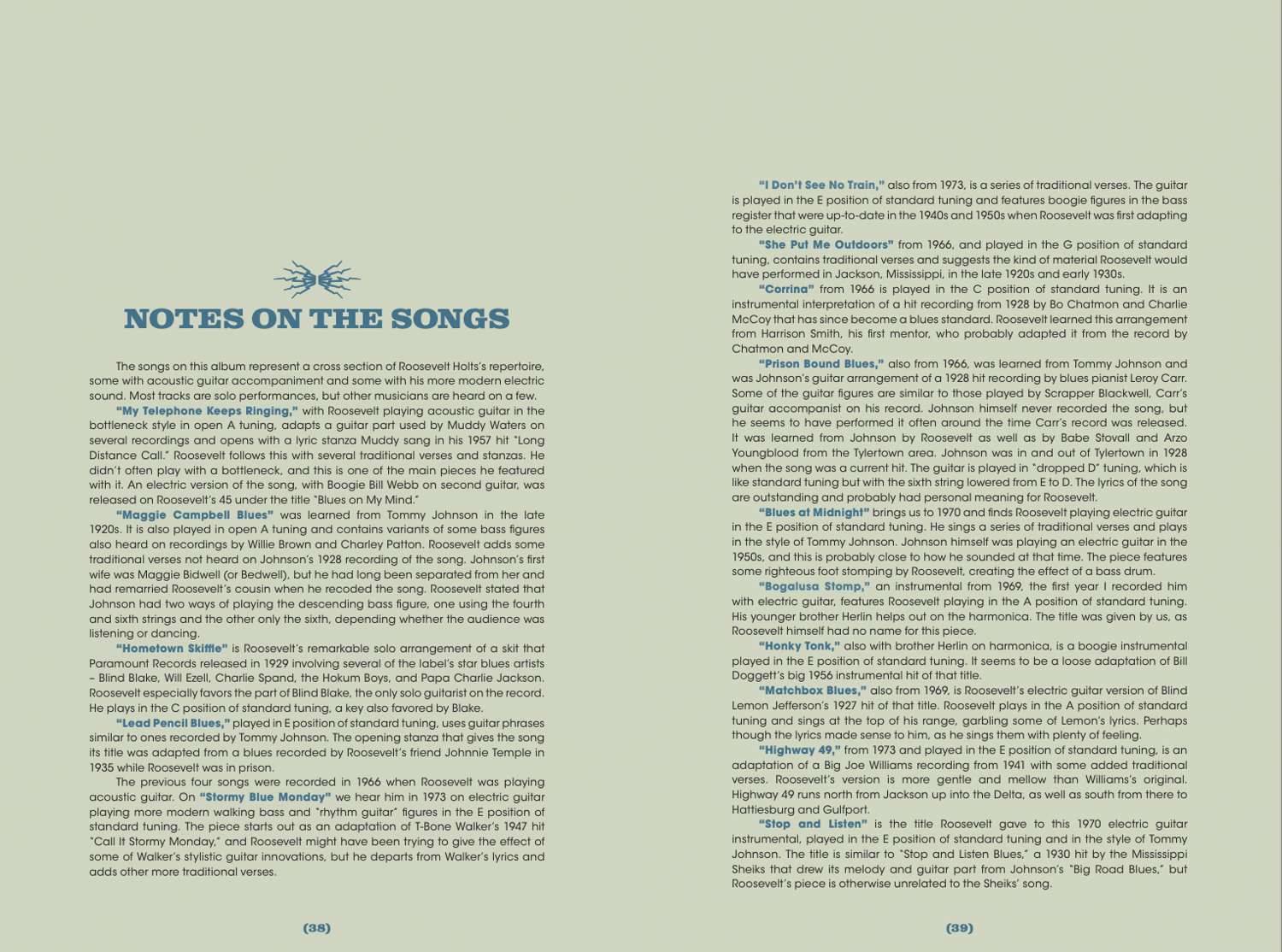 - liner notes, historical essays, and photographs from field sessions.