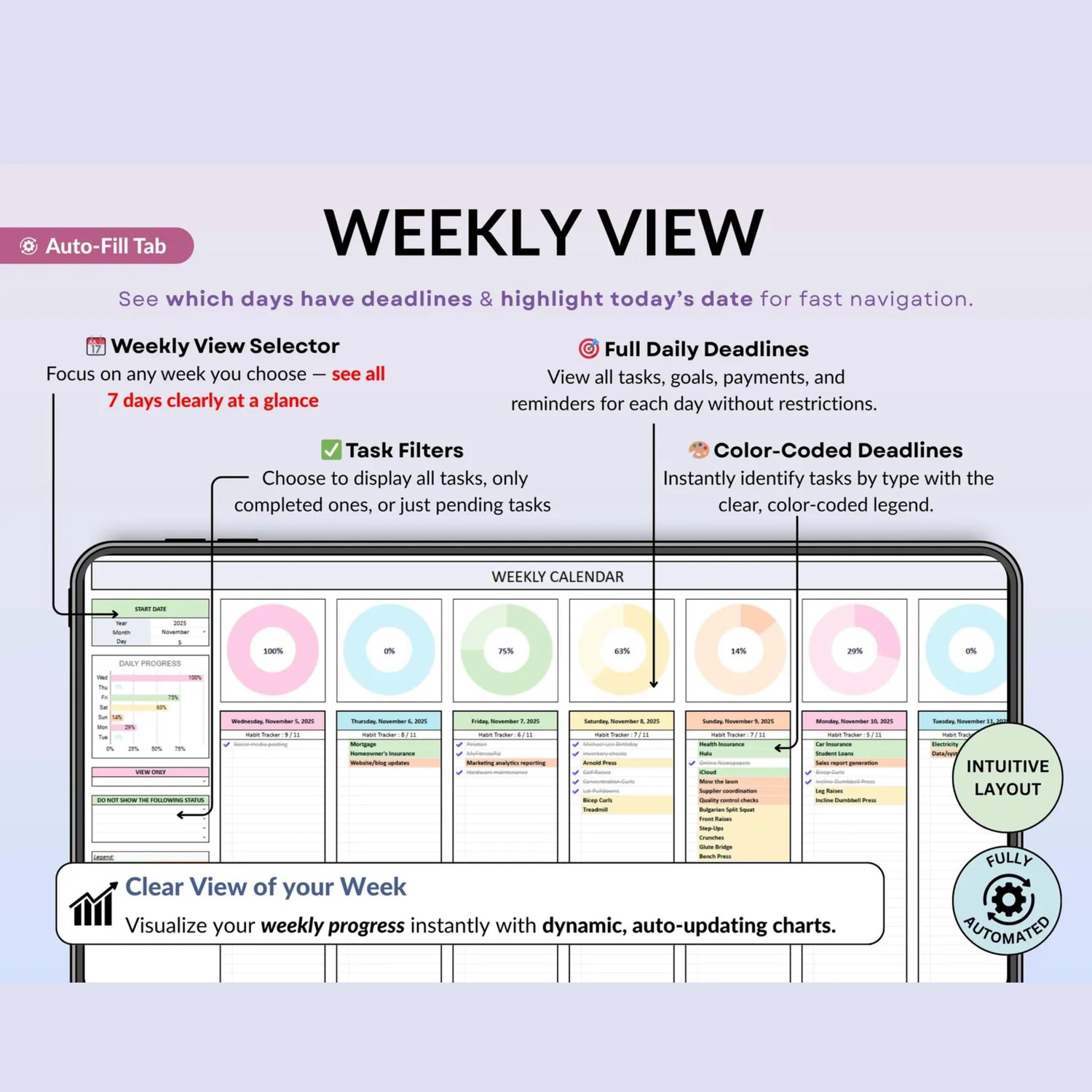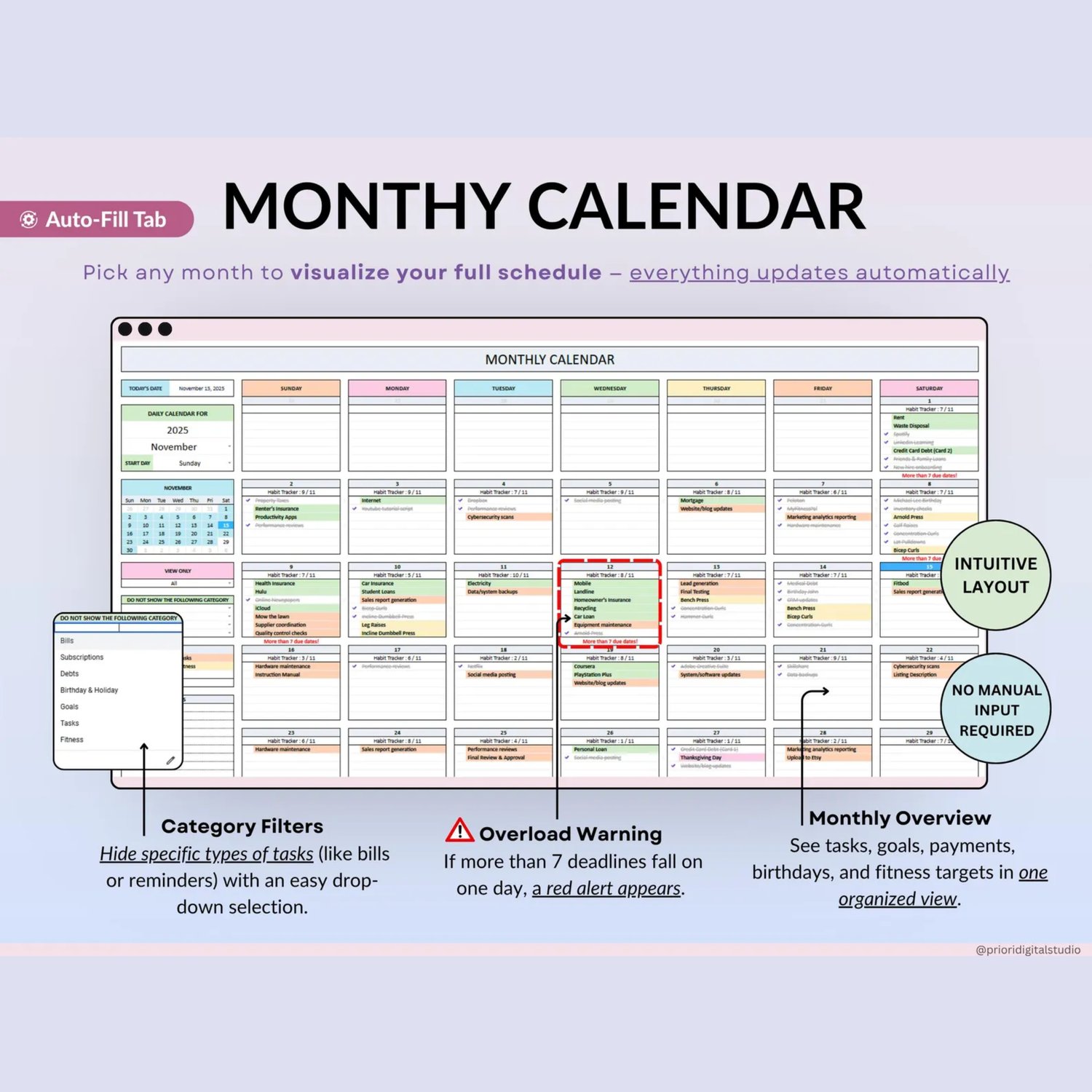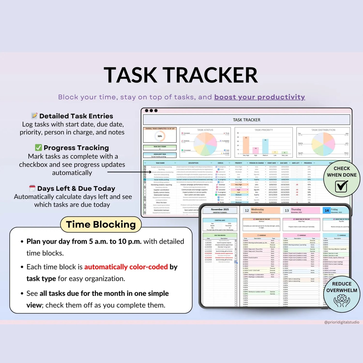 ADHD Life Planner Google Sheets Daily Planner Budget Tracker Excel Productivity Planner Habit