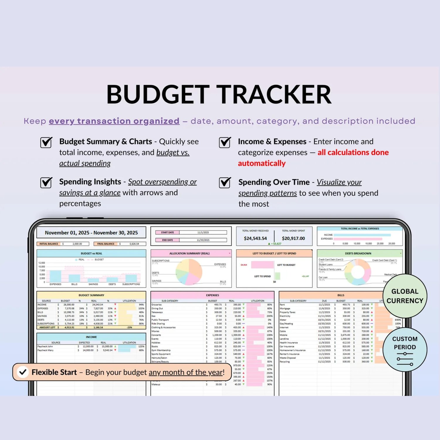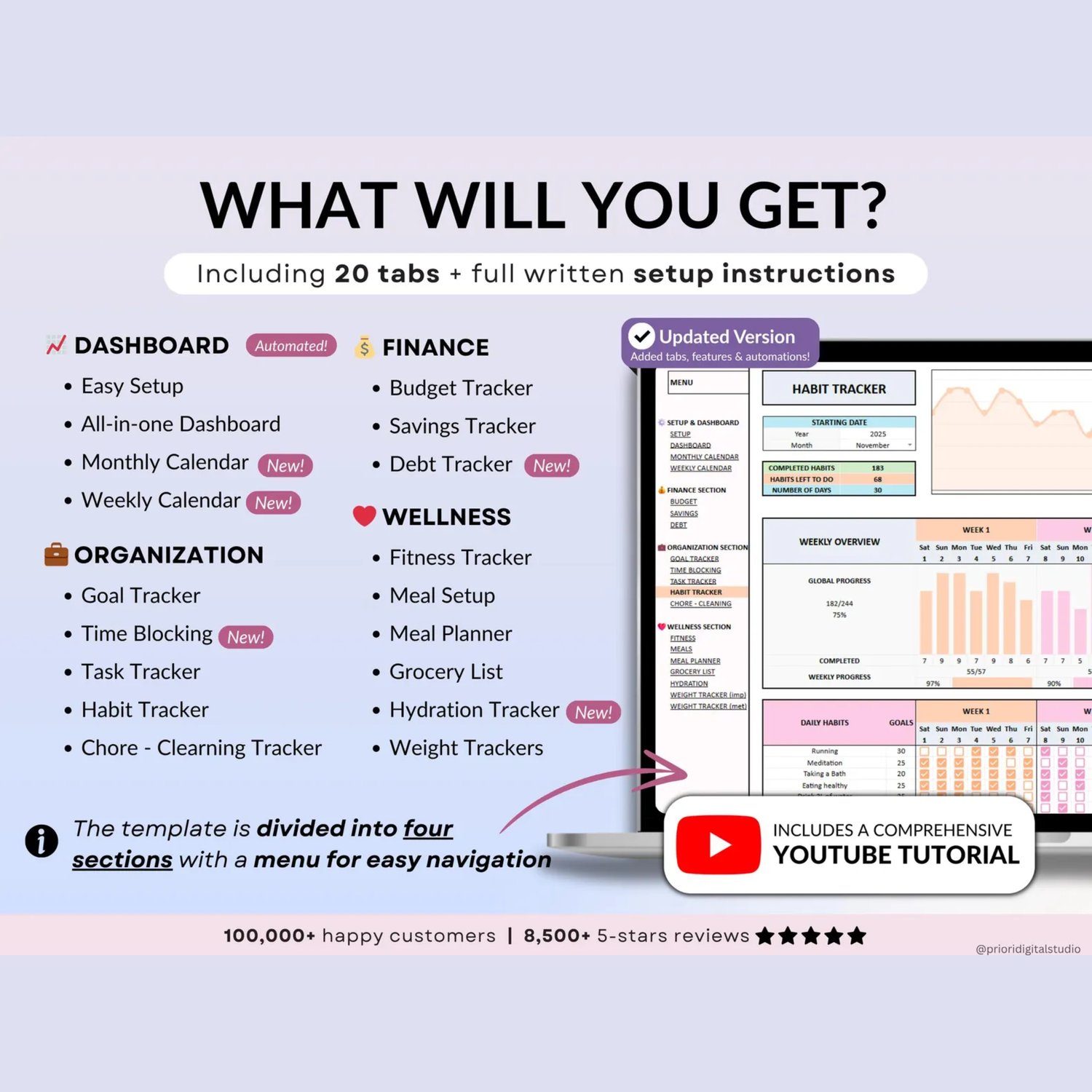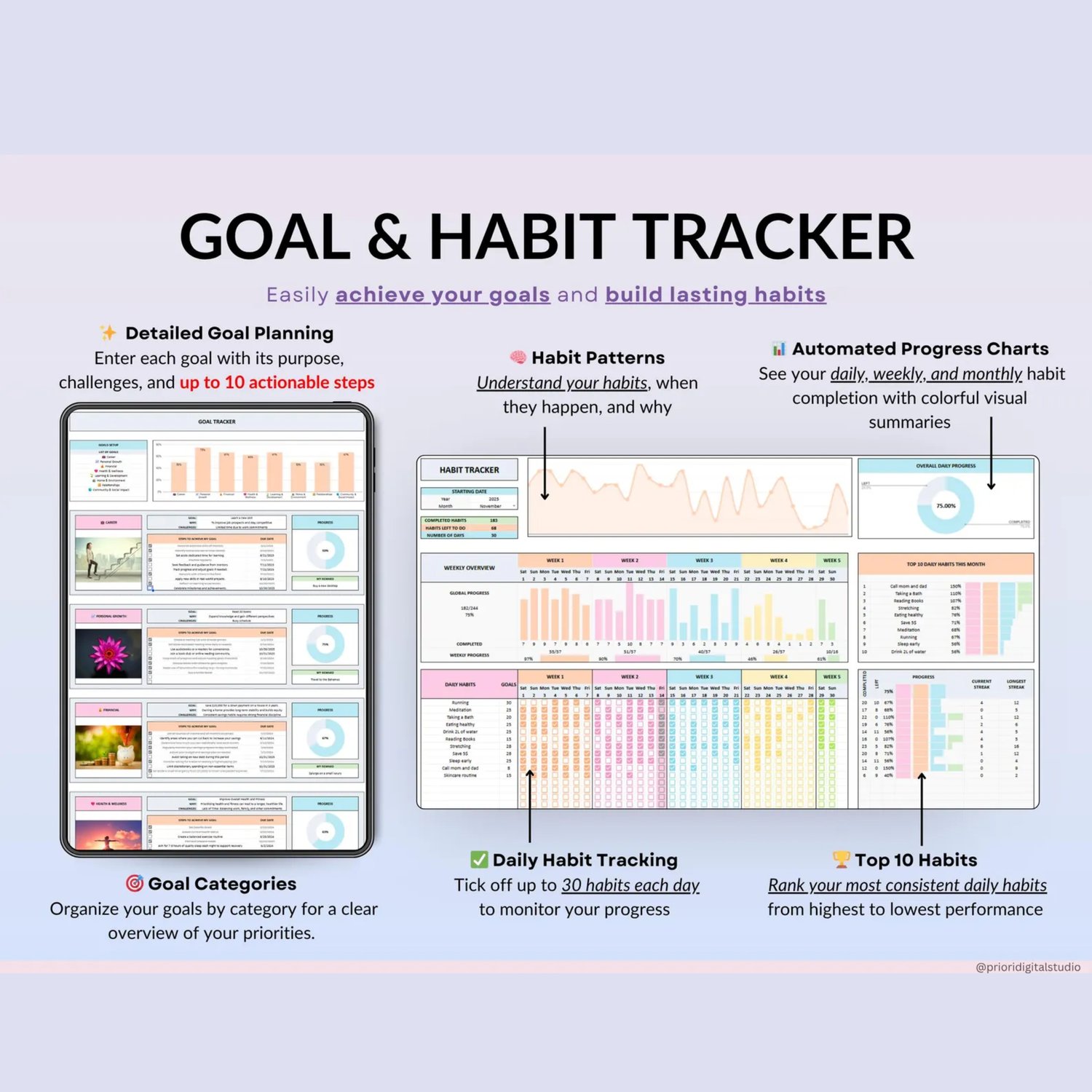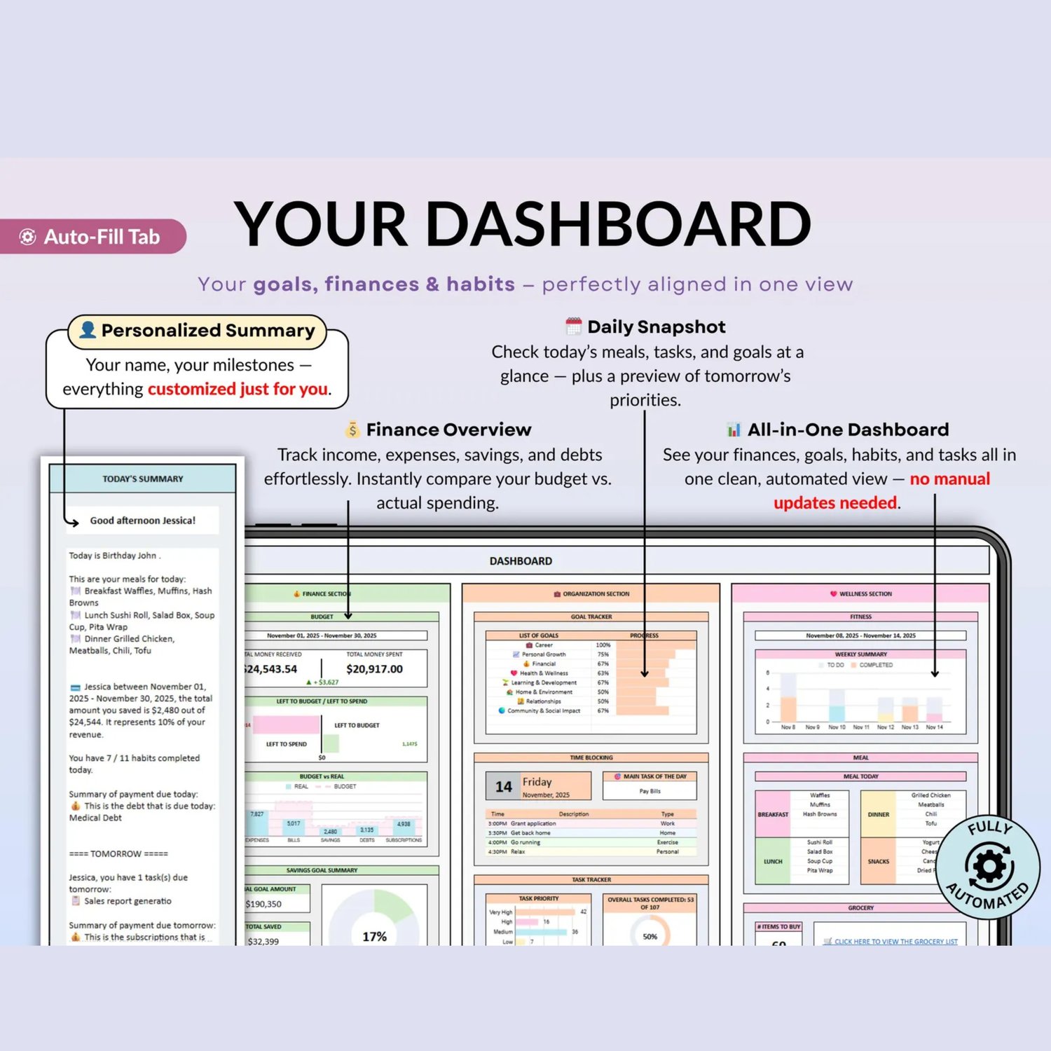 πOur ADHD Life Planner for Google Sheets and Excel is the perfect companion for organizing every aspect of your life. Whether you're meticulously managing your budget, planning meals, tracking your goals and habits, or organizing daily tasks, this comprehensive tool has you covered.