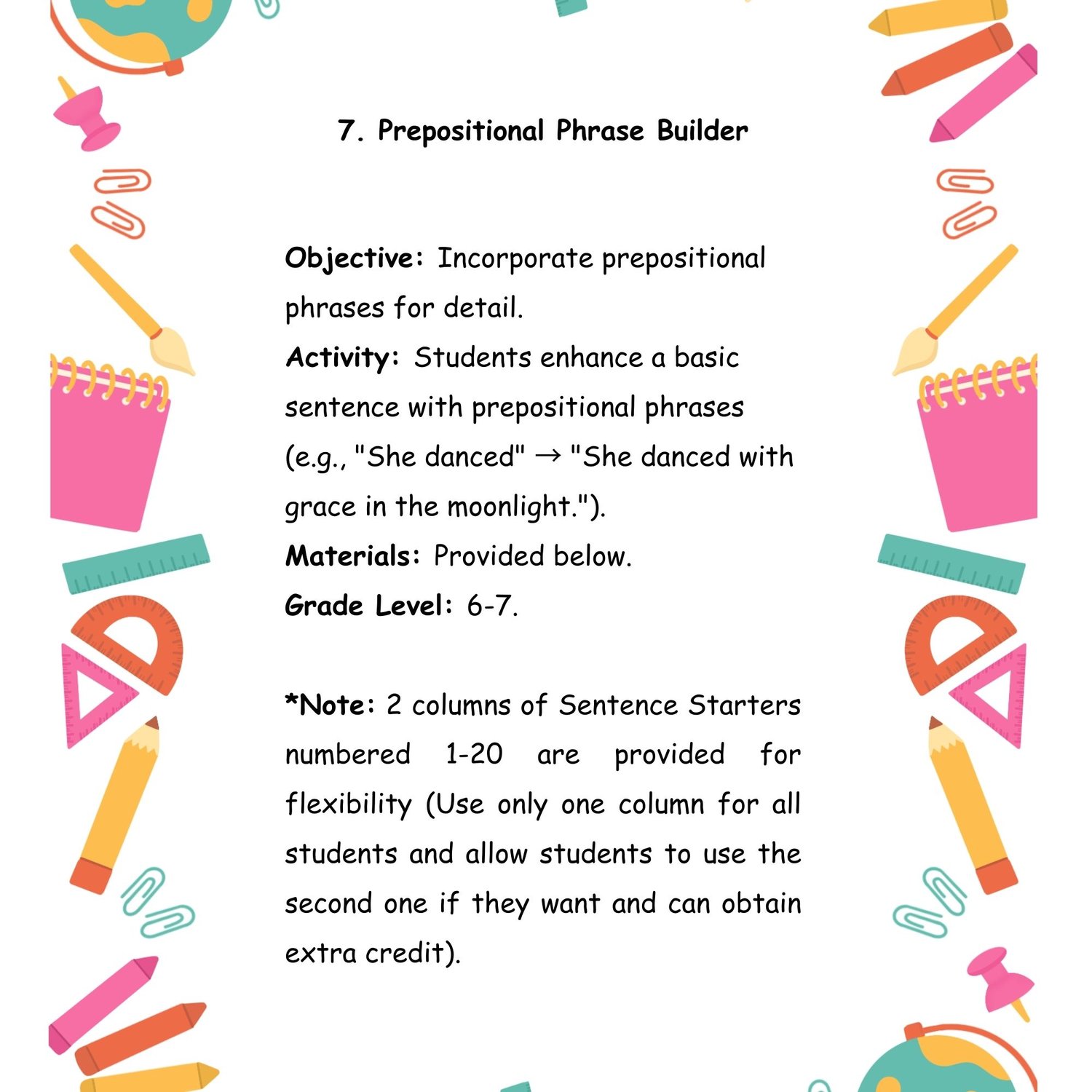 8 syntax Activities for Middle School Students