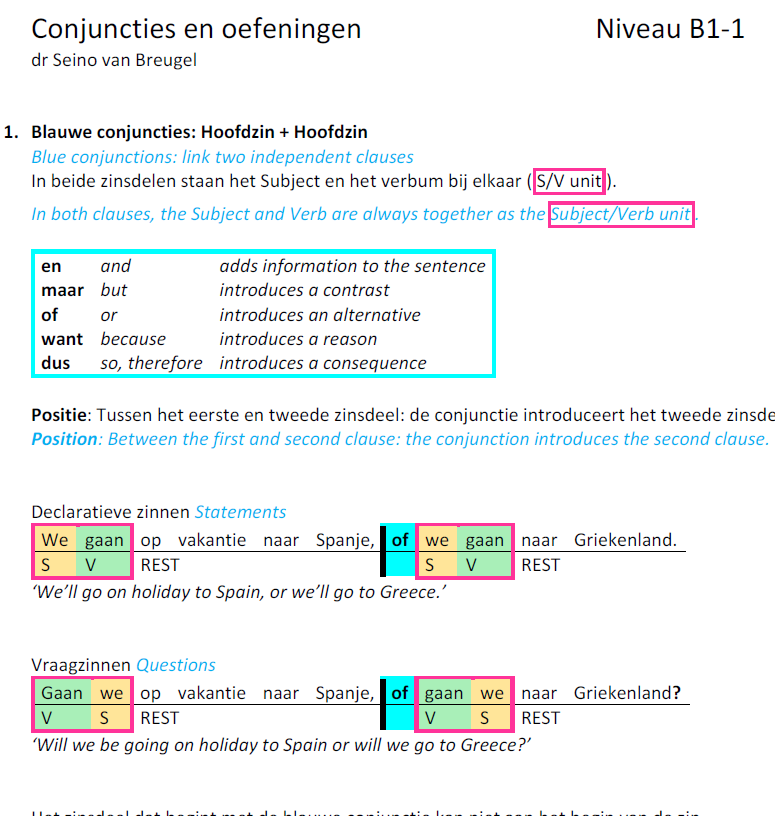 Dutch NT2 - B1-1 - Grammar - Conjunctions