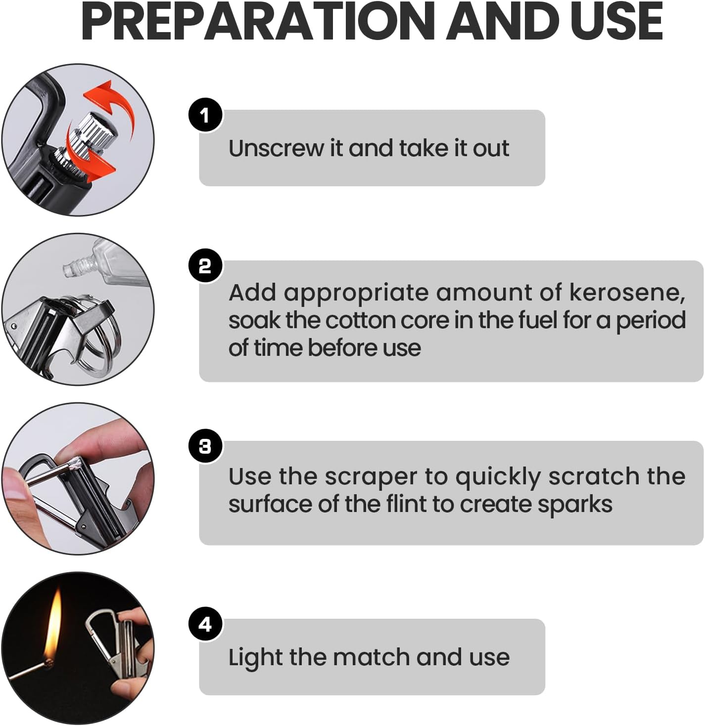 【REUSABLE & DURABLE】Please fill a little fuel to make the cotton wick at the bottom of the matchstic.