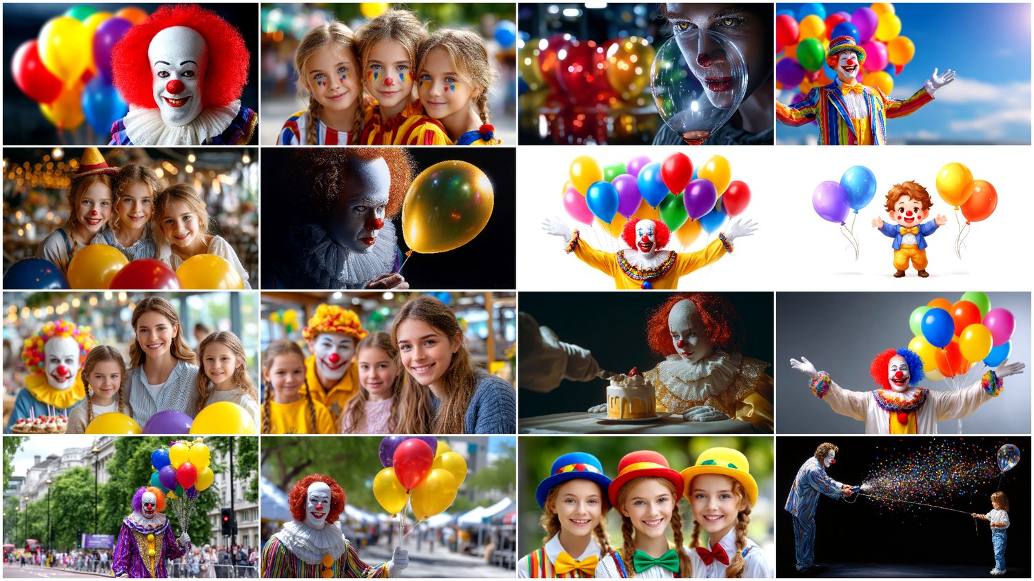 Colorful photo pack full of clowns, confetti, and celebration energy. Perfect for kids’ parties, carnivals, and festive designs.