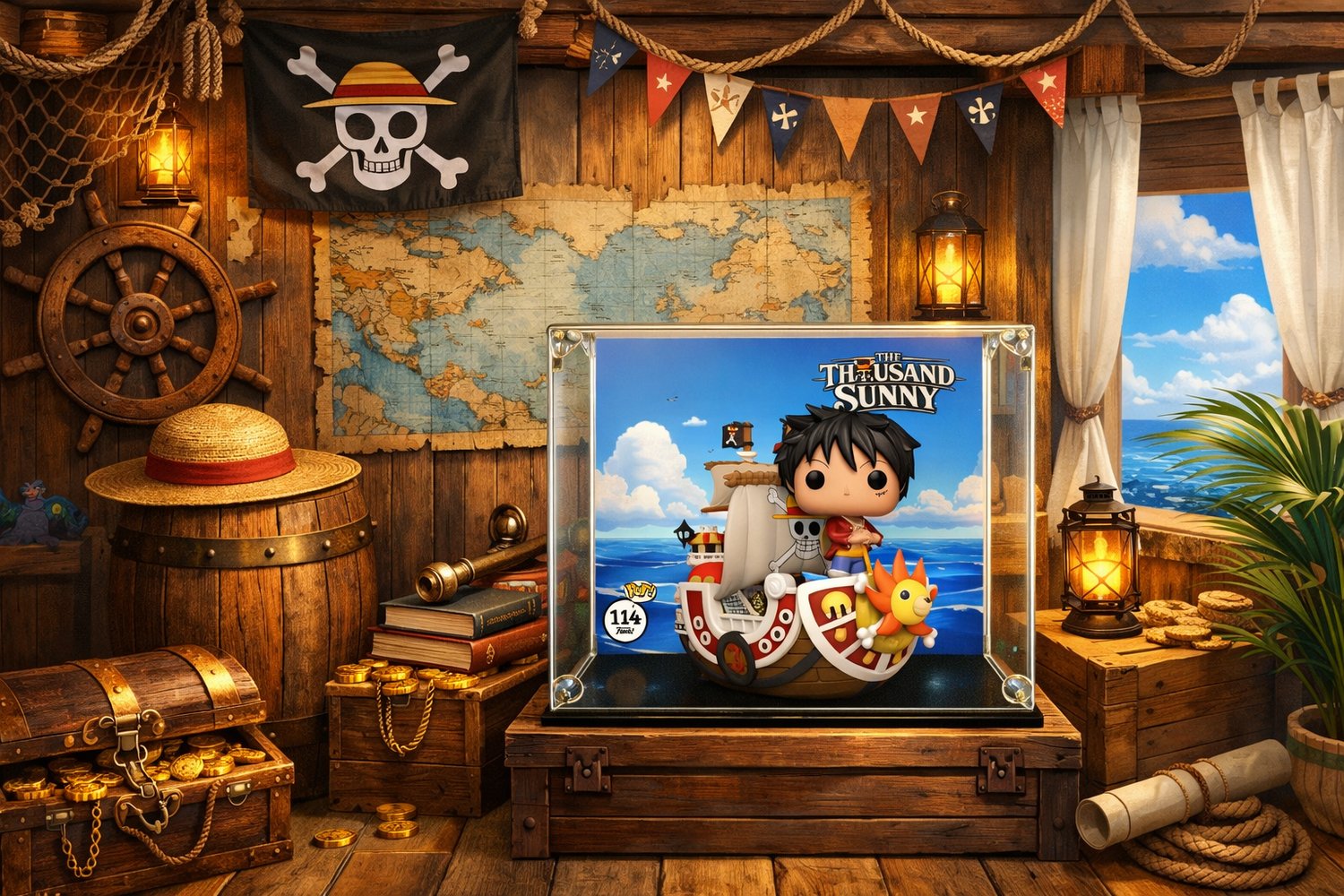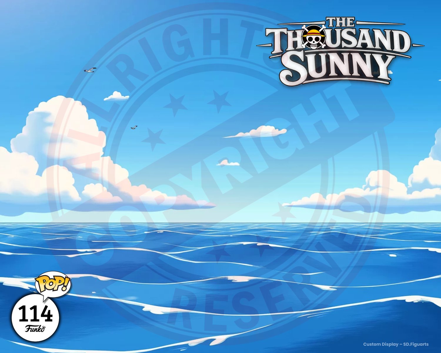 Inspired by the open sea and the Thousand Sunny sailing under a bright sky, the design brings a vibrant and dynamic atmosphere to your display.