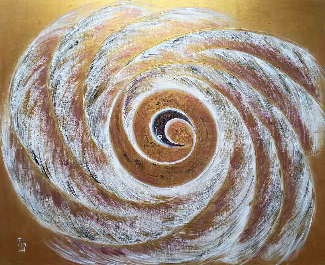 The abstract, spiral-inspired composition draws the eye inward, echoing nature’s endless rhythm while keeping the majestic bird clearly recognizable. The flowing shapes and subtle textures invite reflection on the beauty of life’s constant renewal, making this piece a powerful focal point in any space.
