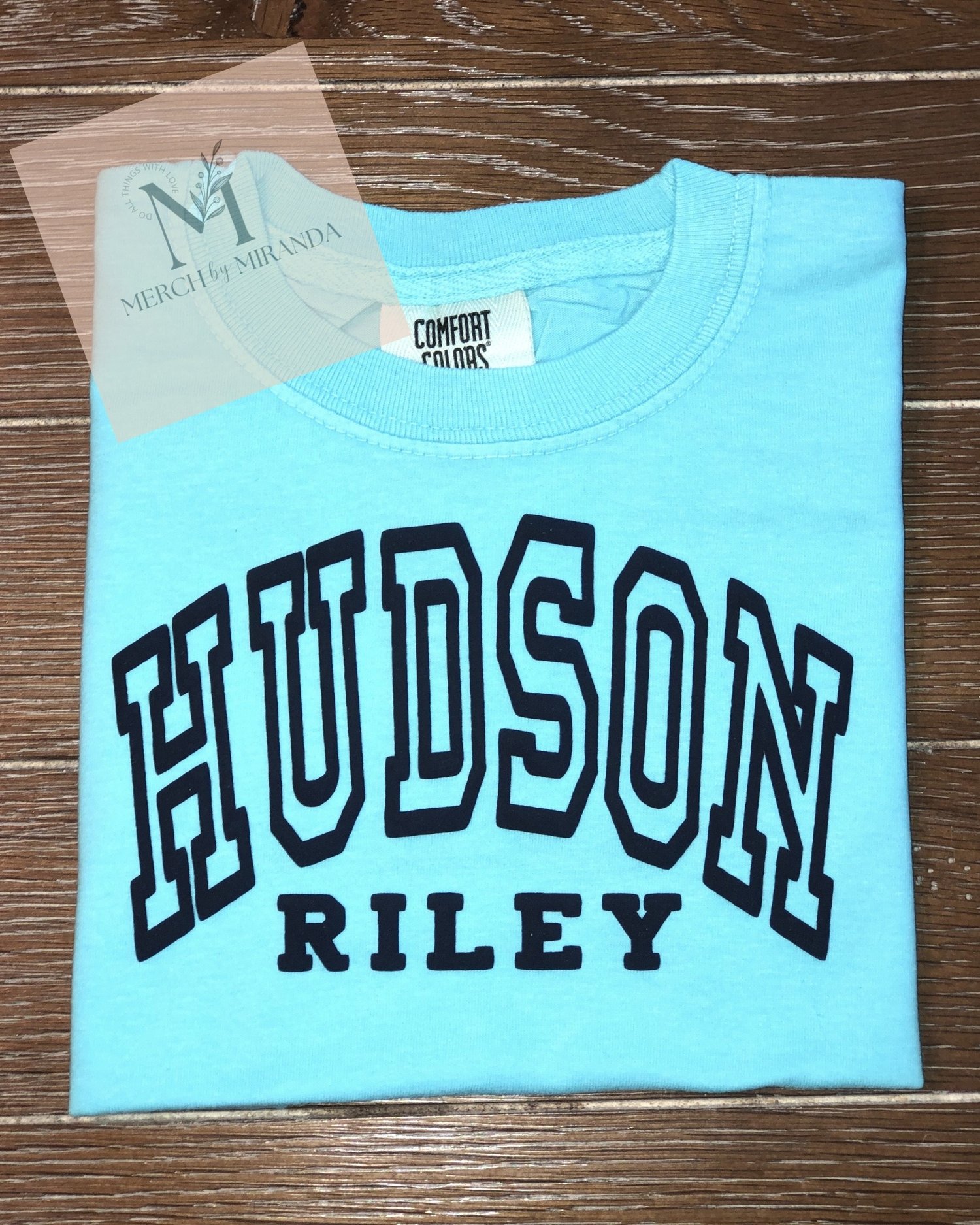 Here's the perfect shirt for your little boy! This custom name shirt is made to order and a Comfort Colors (lagoon blue color) brand shirt. It's perfect for a birthday party or a gift or just because.