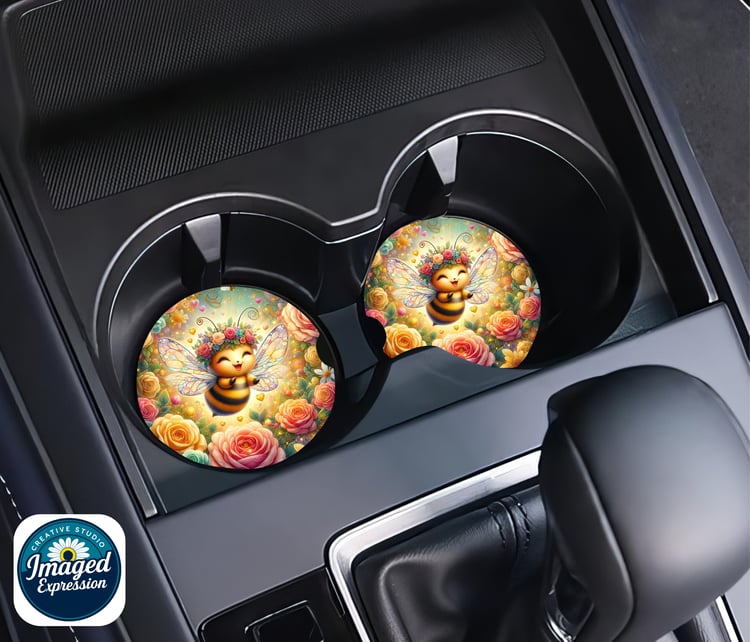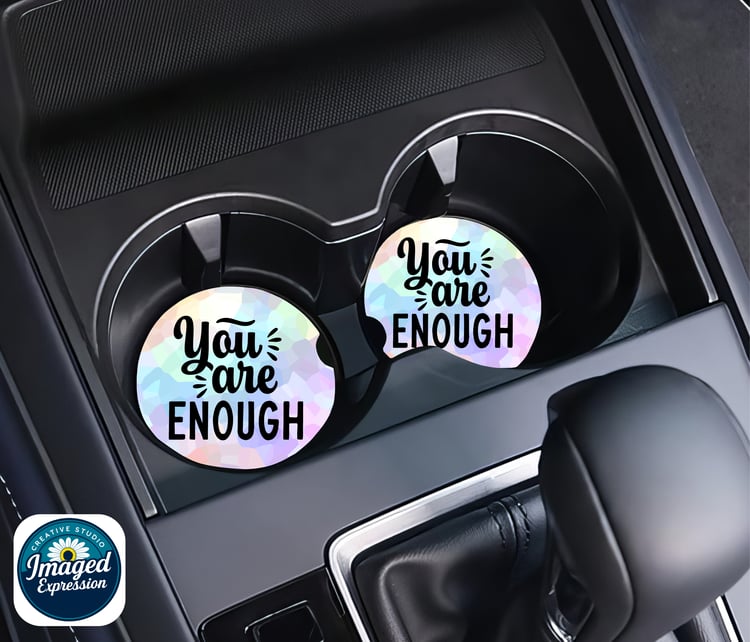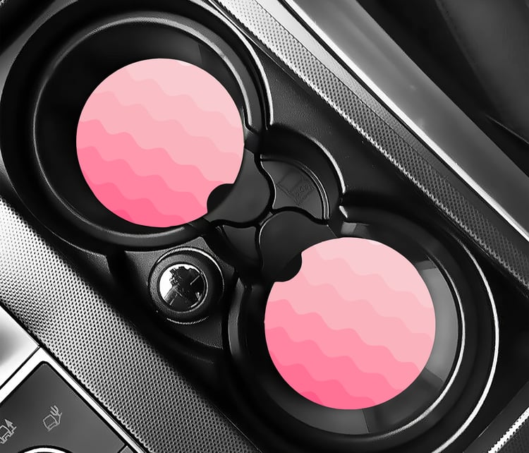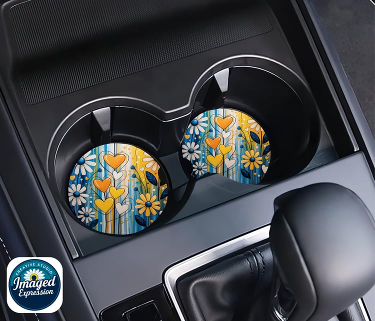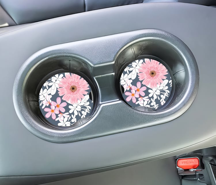 Car Coaster set of 2. These crafted Car Coasters are made of neoprene and are 2.75" round. This set comes beautifully packaged and ready for use to keep you car's cup holders clean or ready to give as a gift.