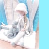 Yarn colors: light blue, blue-grey, white, off-white, light grey, snow white, skin color, beige or light brown