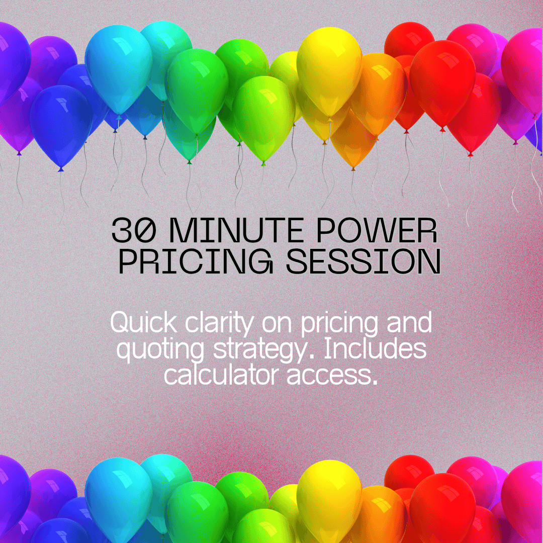 Perfect if you need help quoting a specific job, want feedback on your current pricing, or just want to feel more confident using the pricing calculator. You'll get access to my pricing calculator in both PDF form as well as the plug-in version (it does the math for you!). You'll also receive a written summary of our session for your reference!