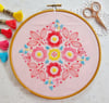 The pattern is perfect for beginner stitchers and uses just five stitches: back stitch, French knots, straight stitch, buttonhole stitch and granito stitch.