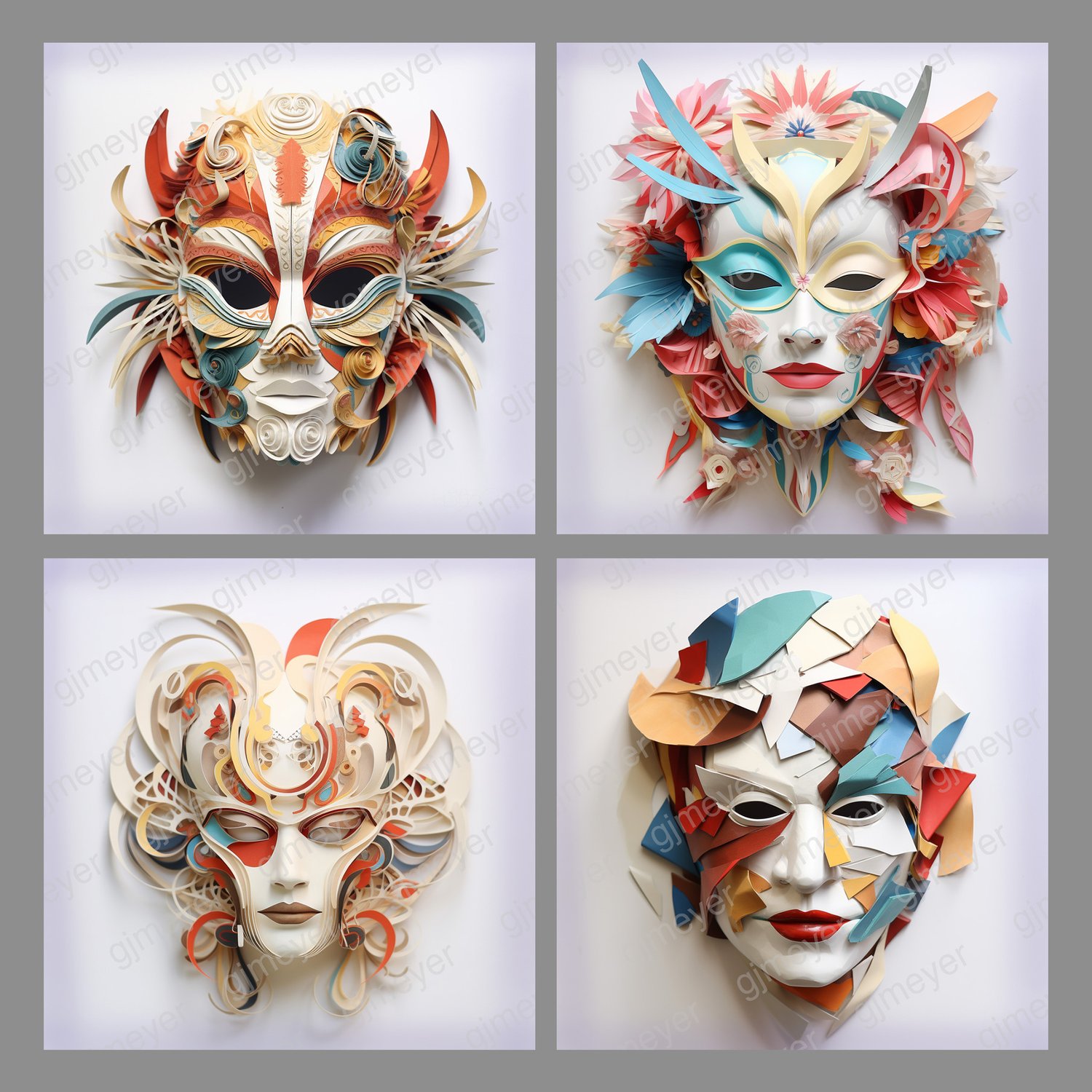 These digital images are from a growing collection of mask images representing countries around the world, the 50 US states and some fun, experimental masks based on different material combinations. The US state collection is inspired by state trees, birds and flowers to create a unique variety and a hand-crafted look. This is a high-quality (4096px X 4096px) digital image perfect for large hanging artwork such as stretched canvases or large-scale digital prints for framing.