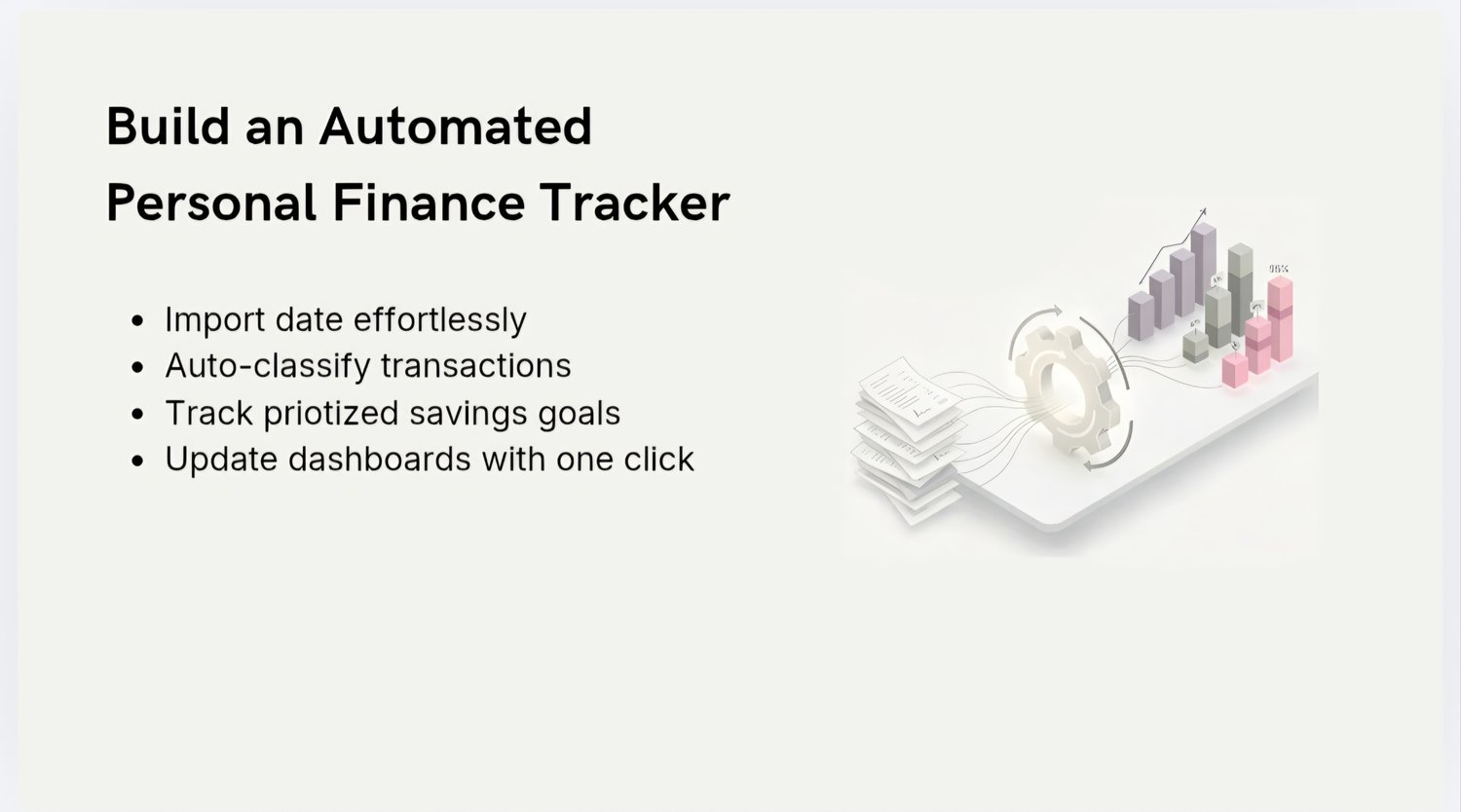A structured step‑by‑step guide that shows how to build an automated Finance Tracker in Excel: data import, smart classification, formulas, dashboards, and savings logic.