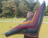 I love mini skeins, especially when I see a set looking like little jewels of yarn side by side, and that’s what inspired this shawl. I wanted to use small amounts of colourful yarn against a neutral background and create something that would work with a set of colours, your own pick and mix stripes and even as a stashbuster for the leftovers I regularly have after knittng socks.