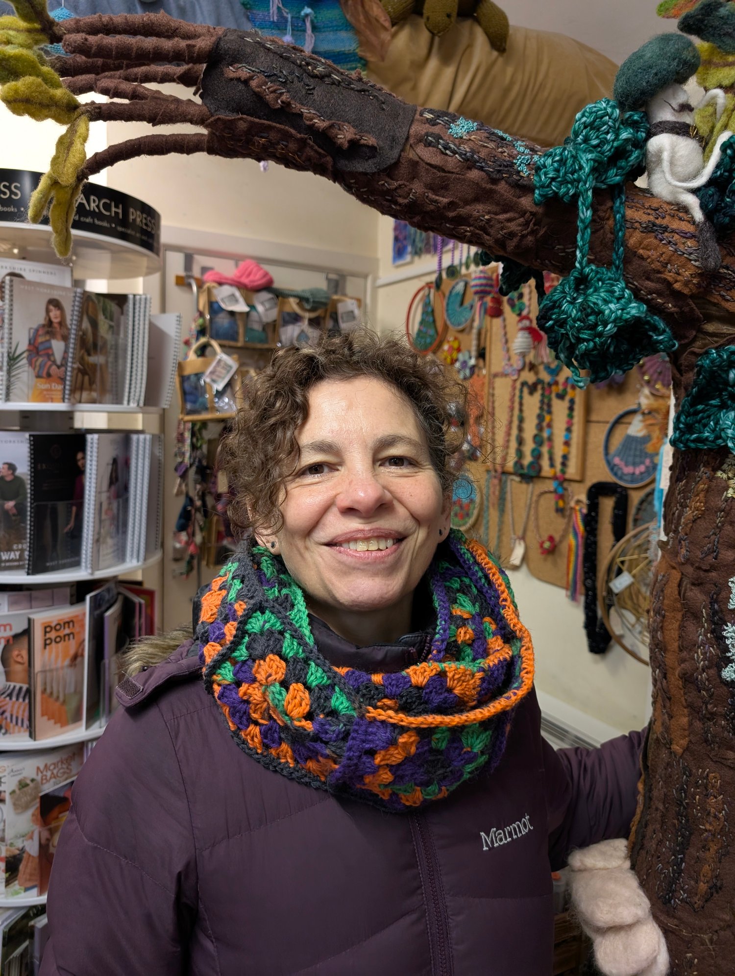 This is an untested pattern for a crochet cowl, using a granny square pattern I normally use in workshops. It's very quick to make, and takes about 225m of DK yarn.