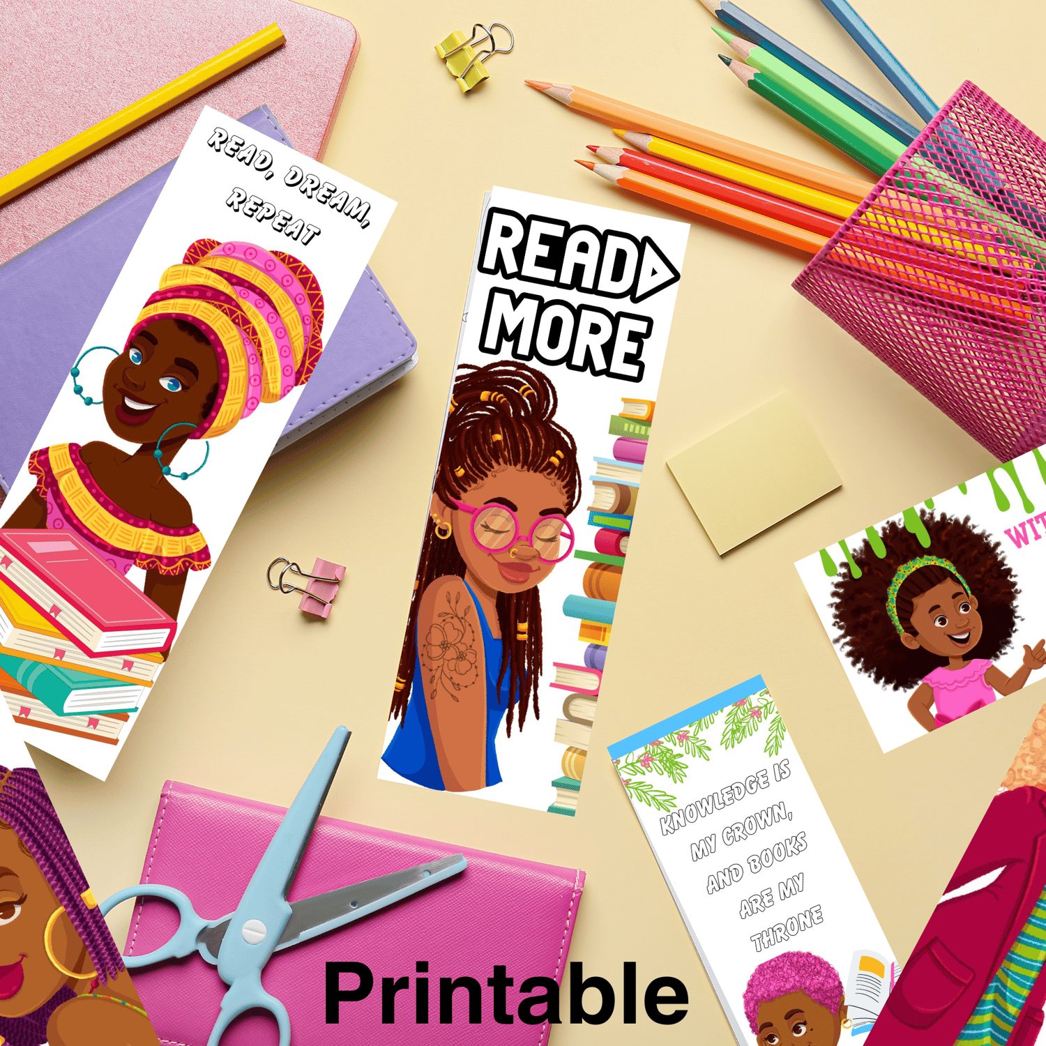 Introducing our stunning collection of elegant and functional bookmarks, designed with exquisite attention to detail. These bookmarks are the perfect companions for book lovers who appreciate both style and functionality. Crafted with care, our black girl bookmarks are thoughtfully created to celebrate the beauty and diversity of women.