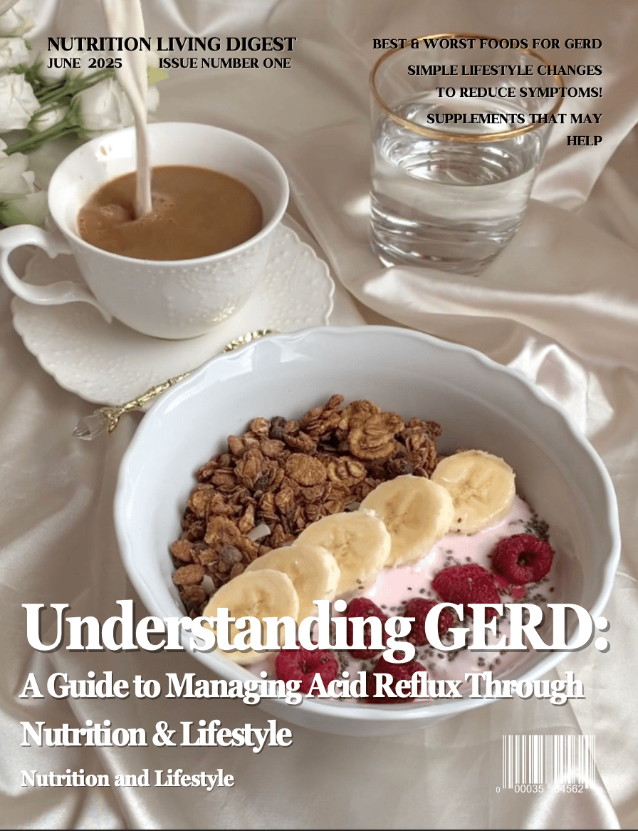 This beautifully designed 30-page FREE ebook gives you everything you need to understand and manage GERD (Gastroesophageal Reflux Disease) using nutrition, lifestyle shifts, and holistic practices.