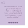 "YES! I loved them. Thank you so much. I found them so useful to just know where to start and what the subject of each email should be."