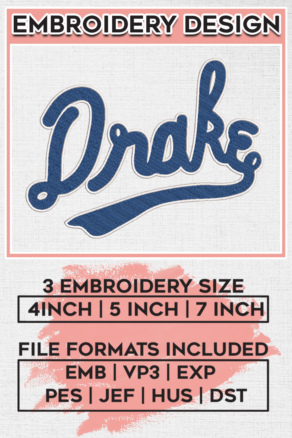 NCAA Drake Football Team Logo Embroidery Designs, NCAA Drake Bulldogs Machine Embroidery Files, NCAA Logo embroidery designs, Ncaa Drake Logo, Digital Download