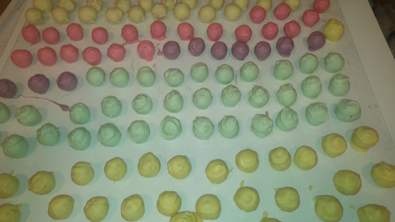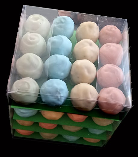 Enrobage au chocolat. Selon la saison noir/ lait/blanc et pastel pour Pâques.