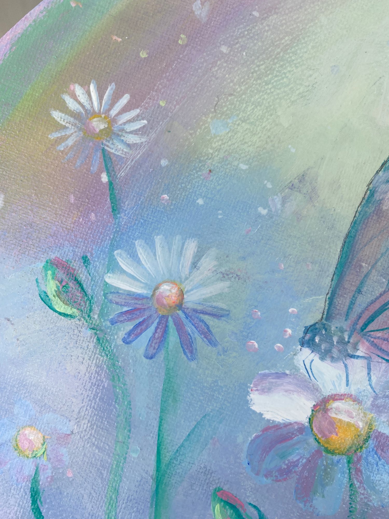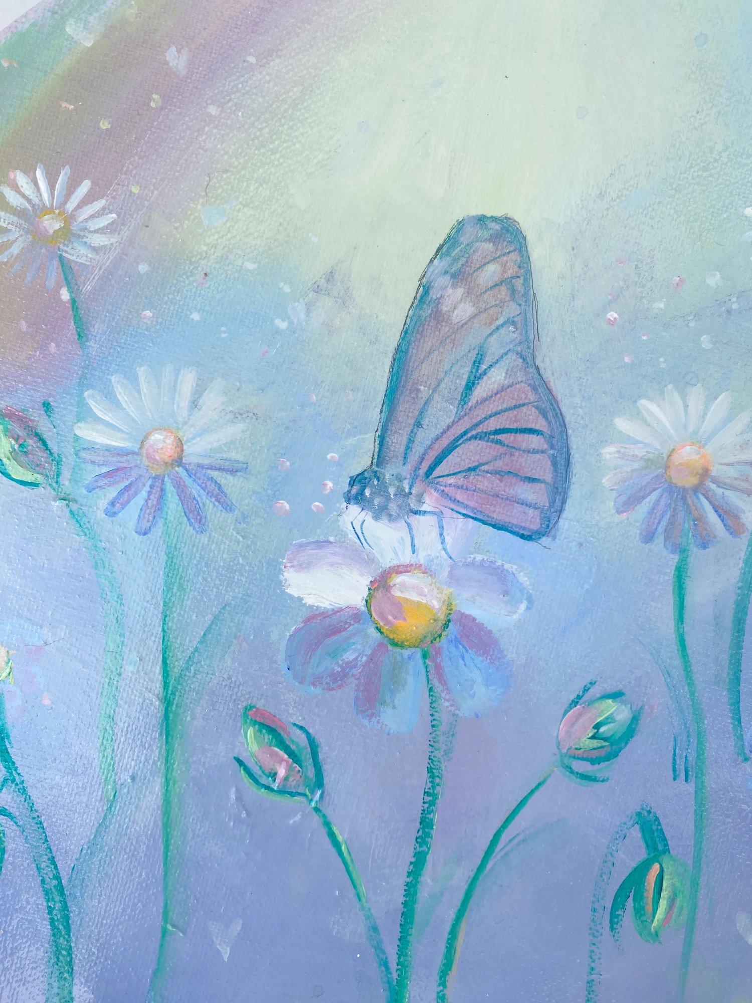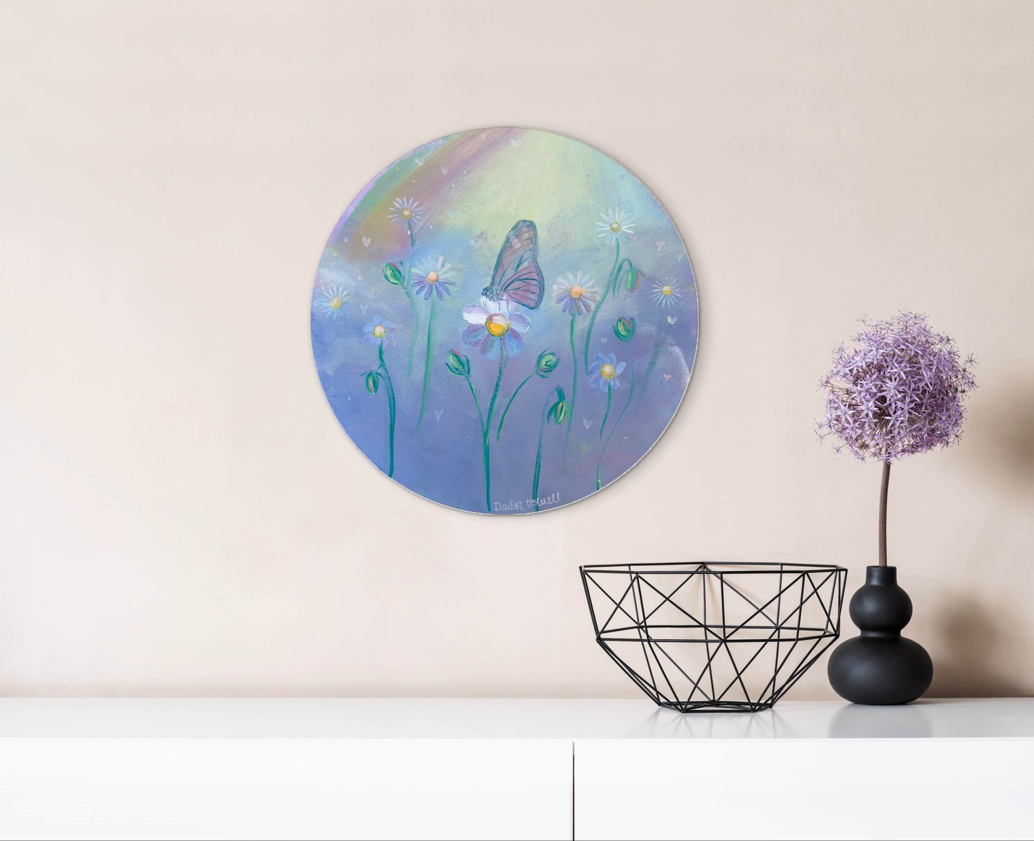 There are tears that break you and tears that set you free. "Tears in Heaven" holds the tender space between grief and grace — the moment when sorrow becomes something sacred. Painted on a round canvas in soft acrylic, this intimate piece carries a quiet, healing energy for anyone who has loved and lost and found their way back to beauty. For the collector who knows that heaven is sometimes found in the deepest feeling.