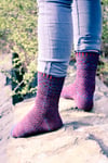 Techniques & Skills Used: longtail CO, knit/purl, decreasing, corrugated ribbing, picking up stitches, slipstich mosaic colorwork, short row heel, grafting; this pattern contains full written instructions, as well as charts for the slipstitch colorwork.