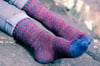 These slipstitch colorwork socks are knit from the cuff down with heel flap and gusset, using mosaic patterns reminiscent of Byzantine tile work.