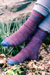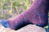 Gauge: 38 st and 48 rows/4” in stockinette stitch, 48 st and 88 rows/4” in Twisted Stripe slipstitch pattern, 42 st and 72 rows/4” in Mosaic Weave slipstitch pattern, after blocking. Slipstitch colorwork is very dense; the slipstitch rows are also somewhat difficult to measure, as one slipped stitch represents two rows. The best way to measure for fit is to try on the sock.