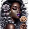 Let the rhythm of the rain meet the elegance of melanin magic! This soulful, high-resolution PNG design features a stunning Black woman with captivating curly hair, sparkling purple lips, and glowing roses—set against a dreamy cascade of rain and floating music notes. Perfect for shirts, journals, canvases, or wall art, this digital artwork is where beauty, creativity, and harmony collide.